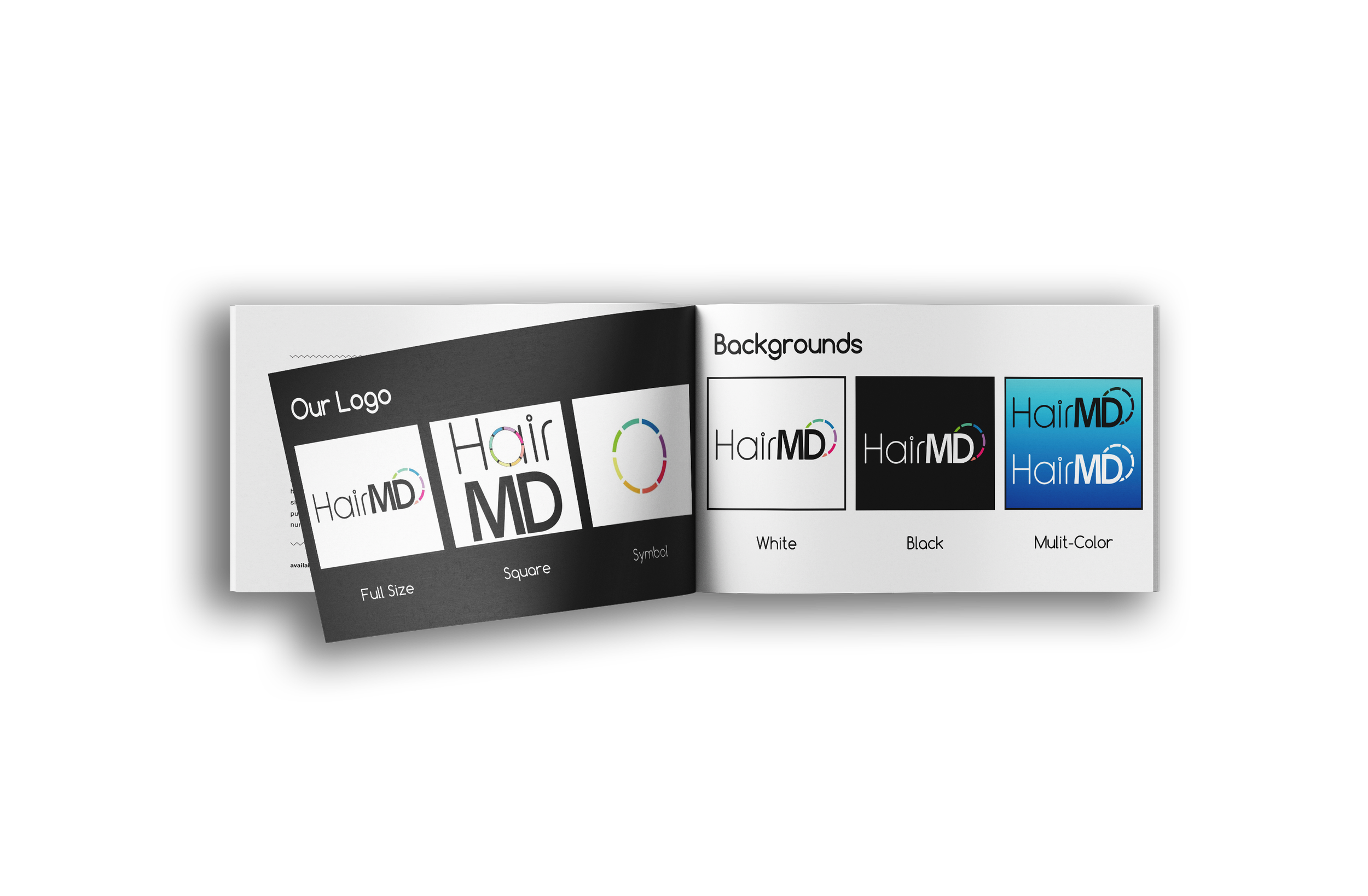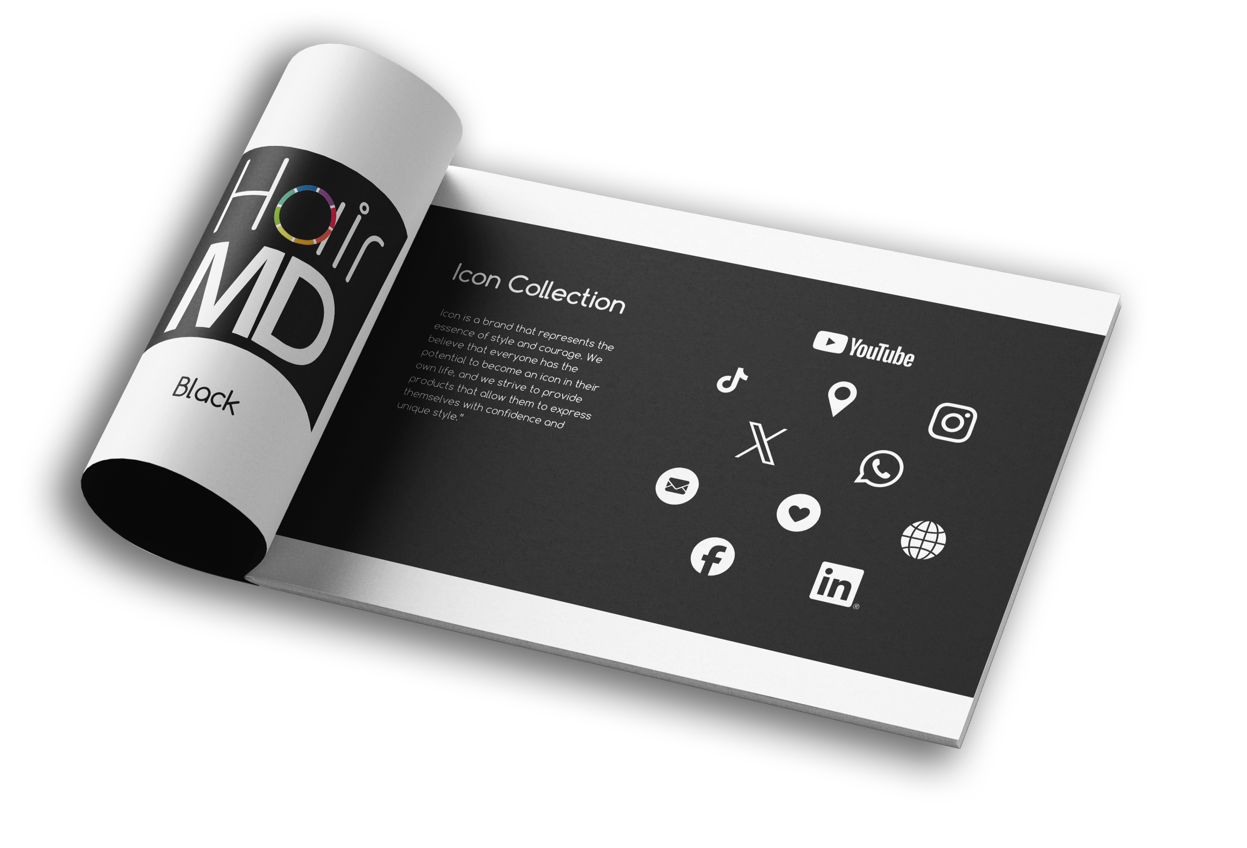 The concept for HairMD started with a single idea: “science meets style.” The brand identity draws inspiration from both lab aesthetics and salon culture—clean, bold, and confident, but never sterile. The logo and supporting design language were built to communicate clarity, intelligence, and modern professionalism while staying visually engaging for stylists and listeners alike.