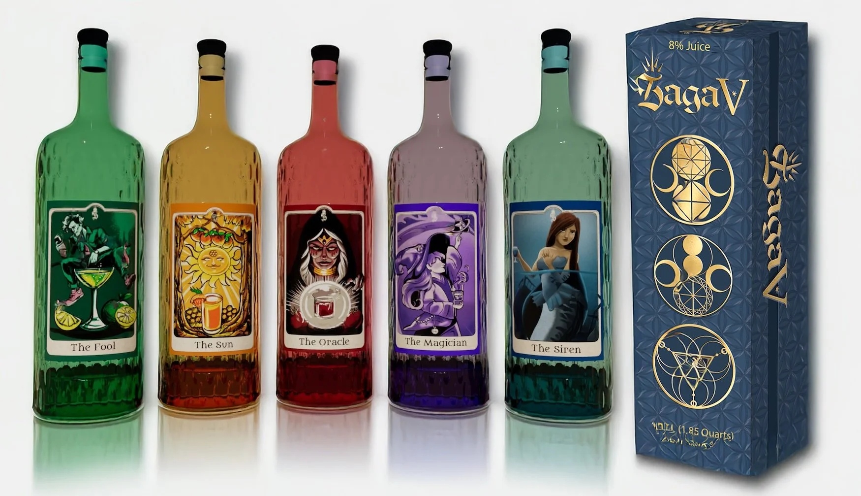This project was all about creating packaging that felt as meaningful as it looked. For Saga V, a tarot-inspired mocktail brand, the goal was to design something premium and intentional that still worked for a full-size 1.75L bottle. While my team focused on packaging, other groups worked simultaneously on branding, content, and web development to bring the product line to life. From early concepts to finished dielines, it became a process of figuring out how to turn a symbolic idea into a tangible, functional design that tied seamlessly into the larger brand vision.