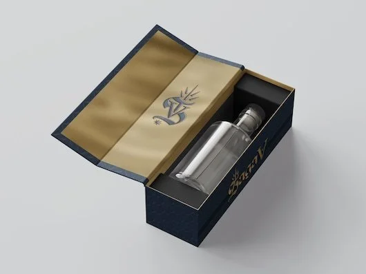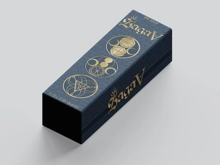 When deciding on the box structure, the main focus was making it feel authentic to the experience of opening a tarot card deck while still being realistic for a 1.75L glass bottle. Early discussions included using a sleeve-style box, but there was a general concern throughout the team that it wouldn’t provide enough support or protection for the product’s weight. The team collectively chose a rigid magnet-closure box instead because it offered a more secure structure, matched the premium feel of the brand, and still gave that ritual-like experience of a tarot card reveal
